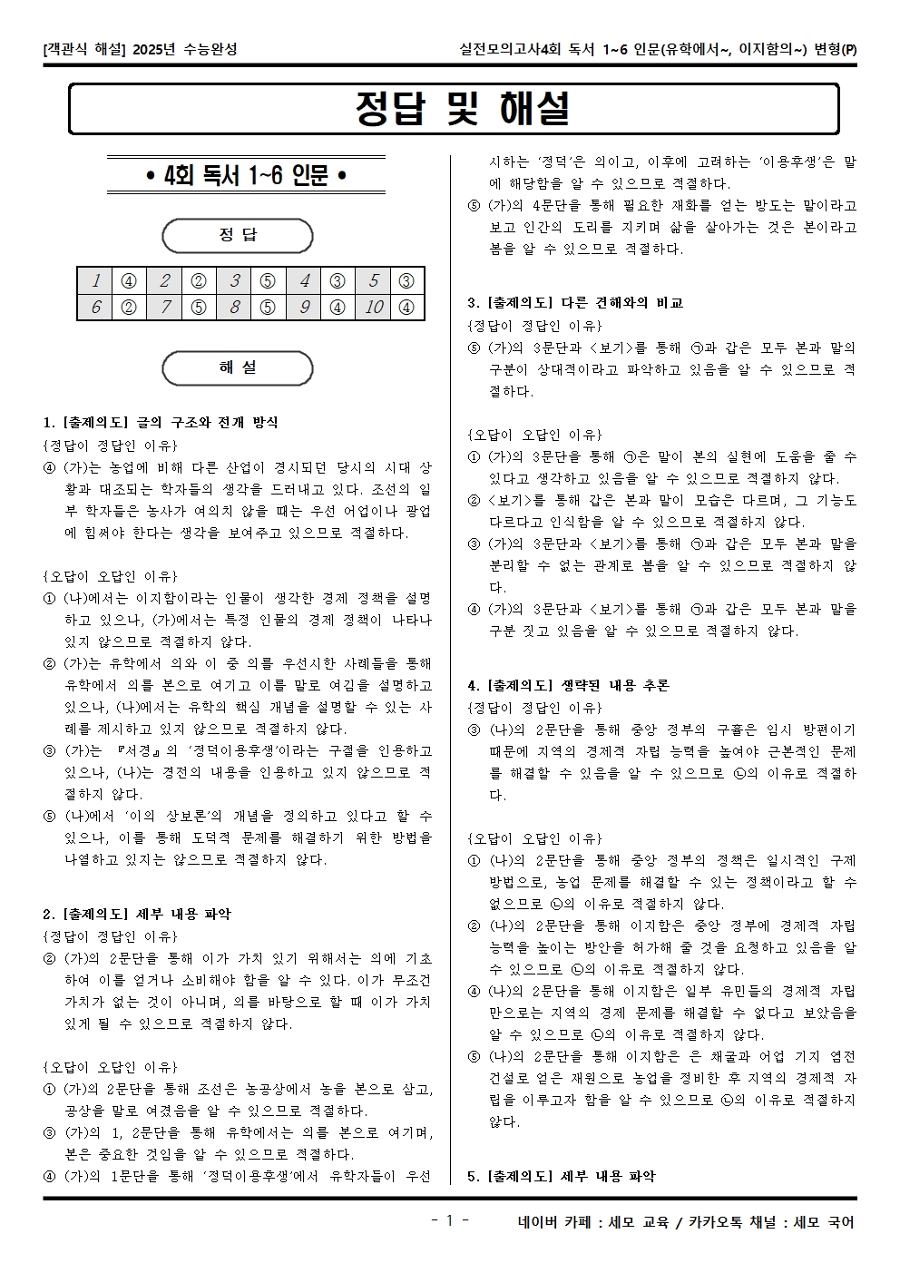 2025년 수능완성 실전모의고사4회 독서 1~6 인문(유학에서~, 이지함의~) 객관식 변형문제가 제작됐습니다! 세모 국어의 선생님들이 집중하여 최선을 다해 만든 자료인 만큼 내신, 수능 대비에 큰 도움이 되리라 자부합니다.