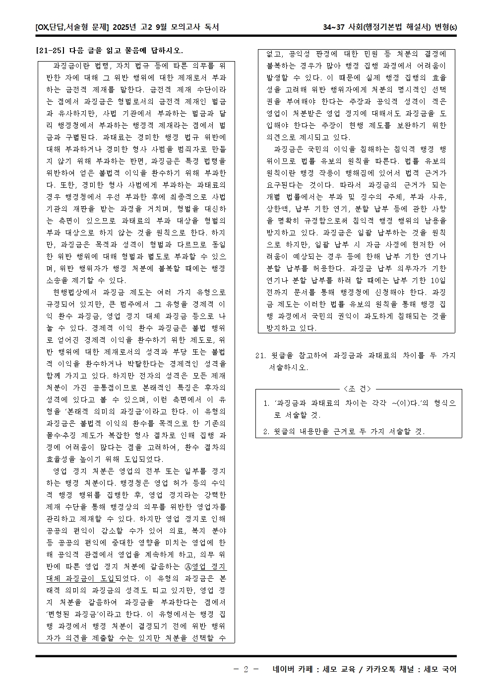2025년 고2 9월 모의고사 독서 34~37 사회(행정기본법 해설서) OX,단답,서술형 변형문제는 수능특강이 내신으로 들어가는 학생분들, 그 학생들을 가르치는 강사·교사·과외 선생님들, 수능을 준비하는 수험생들, 기타 자료가 필요하신 분 등을 위한 자료입니다.