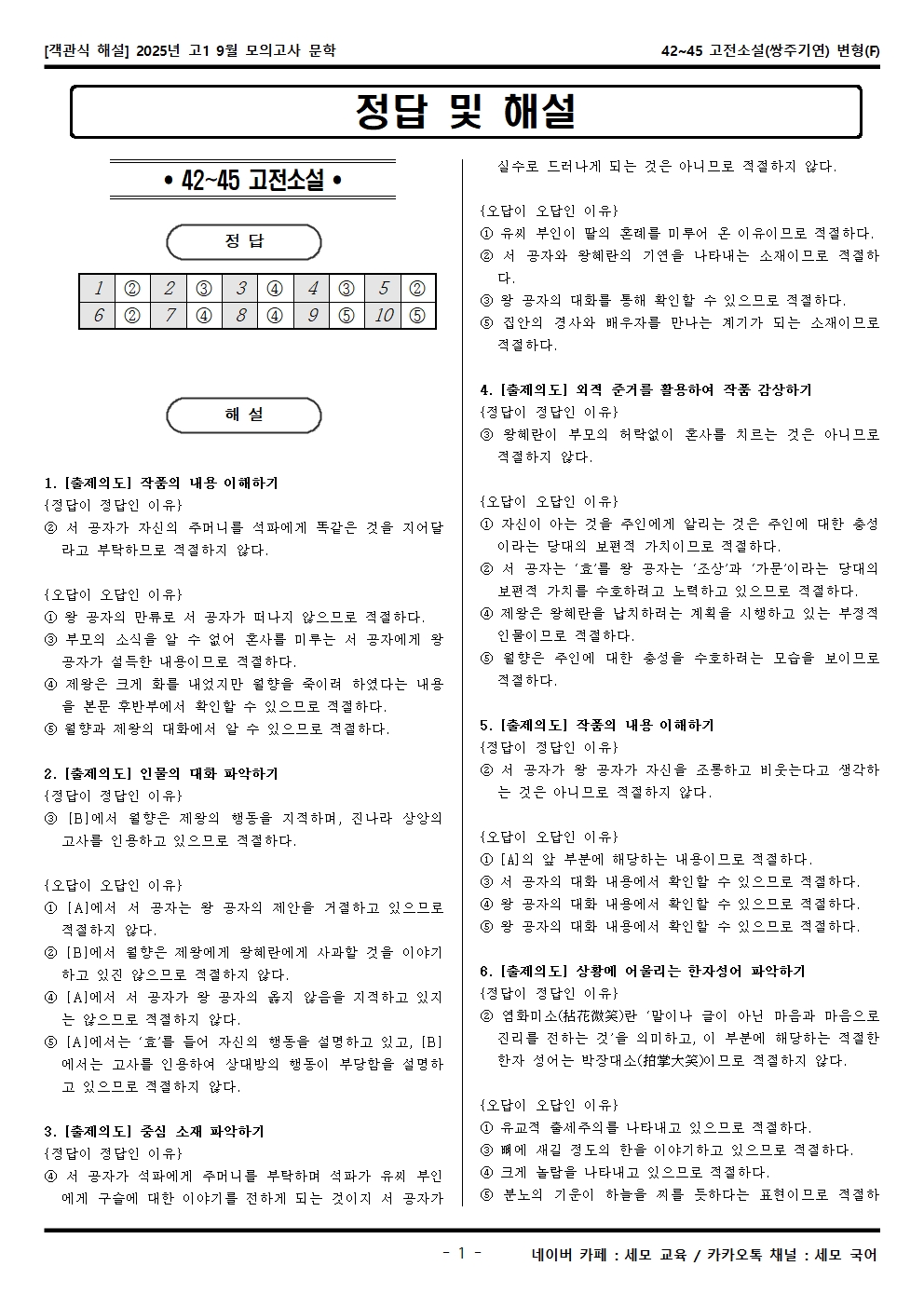 2025년 고1 9월 모의고사 문학 42~45 고전소설(쌍주기연) 객관식 변형문제가 제작됐습니다! 세모 국어의 선생님들이 집중하여 최선을 다해 만든 자료인 만큼 내신, 수능 대비에 큰 도움이 되리라 자부합니다.