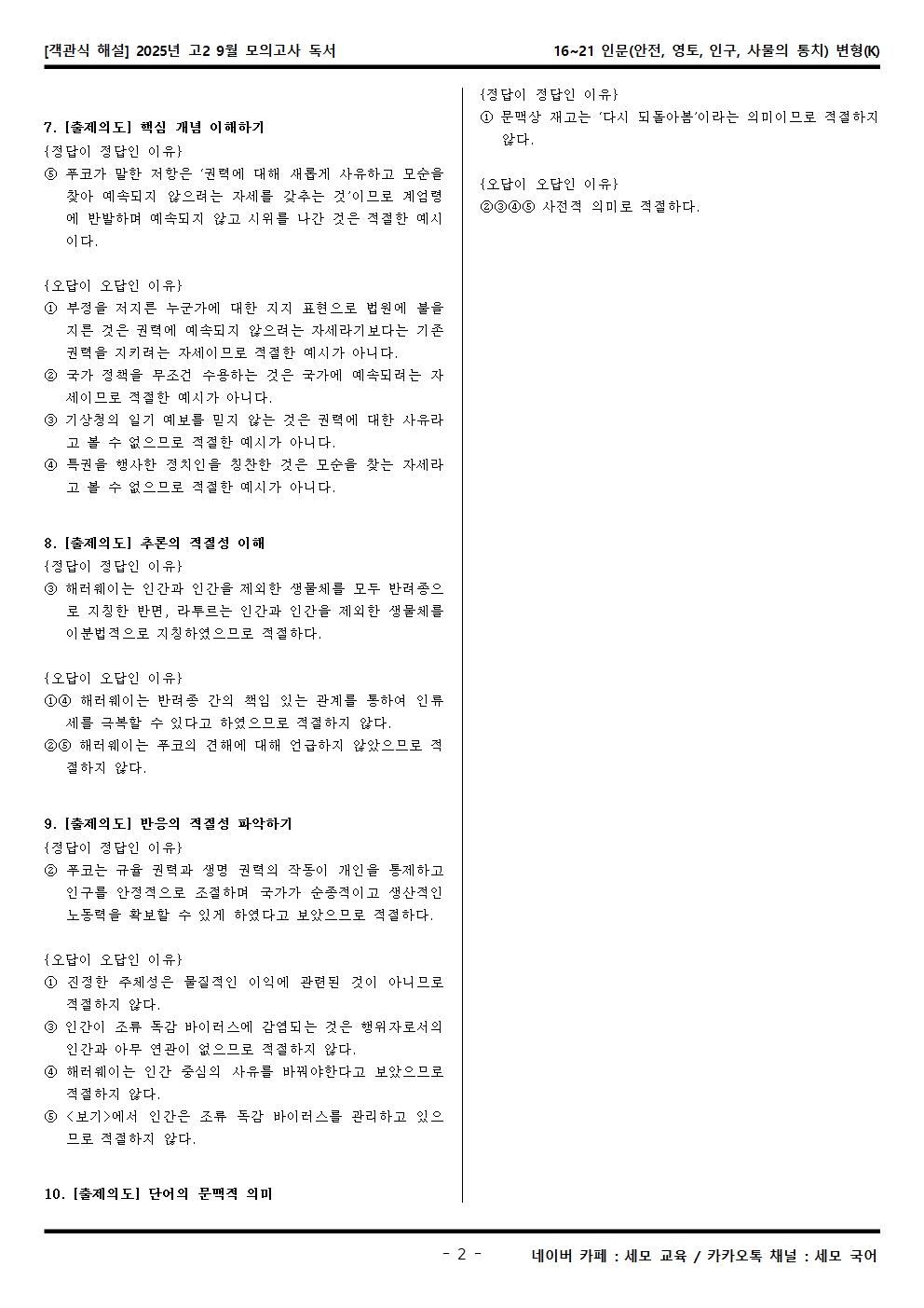 2025년 고2 9월 모의고사 독서 16~21 인문(안전, 영토, 인구, 사물의 통치) 객관식 변형문제는 수능특강이 내신으로 들어가는 학생분들, 그 학생들을 가르치는 강사·교사·과외 선생님들, 수능을 준비하는 수험생들, 기타 자료가 필요하신 분 등을 위한 자료입니다.