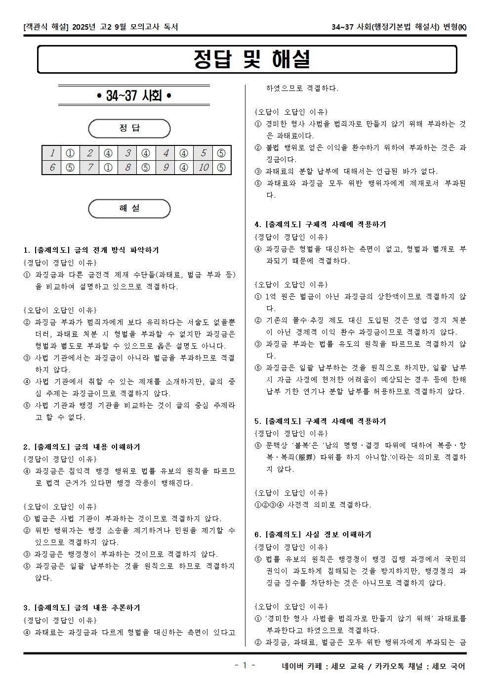 2025년 고2 9월 모의고사 독서 34~37 사회(행정기본법 해설서) 객관식 변형문제가 제작됐습니다! 세모 국어의 선생님들이 집중하여 최선을 다해 만든 자료인 만큼 내신, 수능 대비에 큰 도움이 되리라 자부합니다.