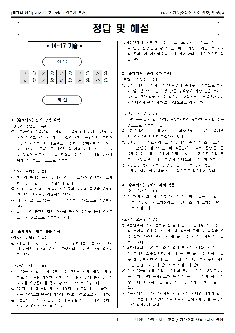 2025년 고3 9월 모의고사 독서 14~17 기술(오디오 신호 압축) 객관식 변형문제가 제작됐습니다! 세모 국어의 선생님들이 집중하여 최선을 다해 만든 자료인 만큼 내신, 수능 대비에 큰 도움이 되리라 자부합니다.