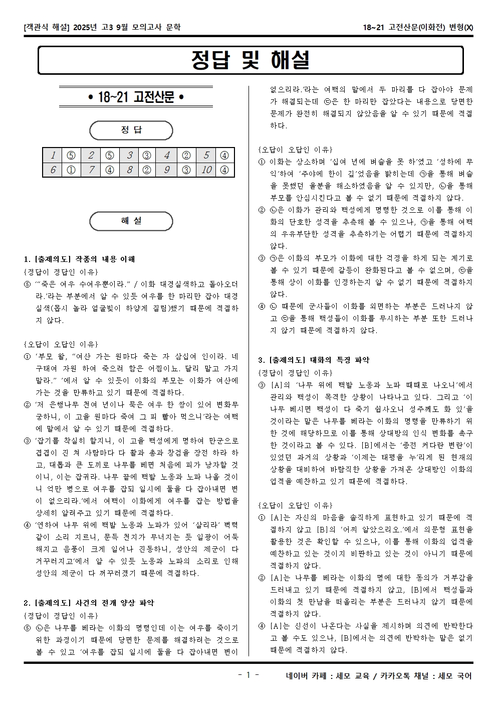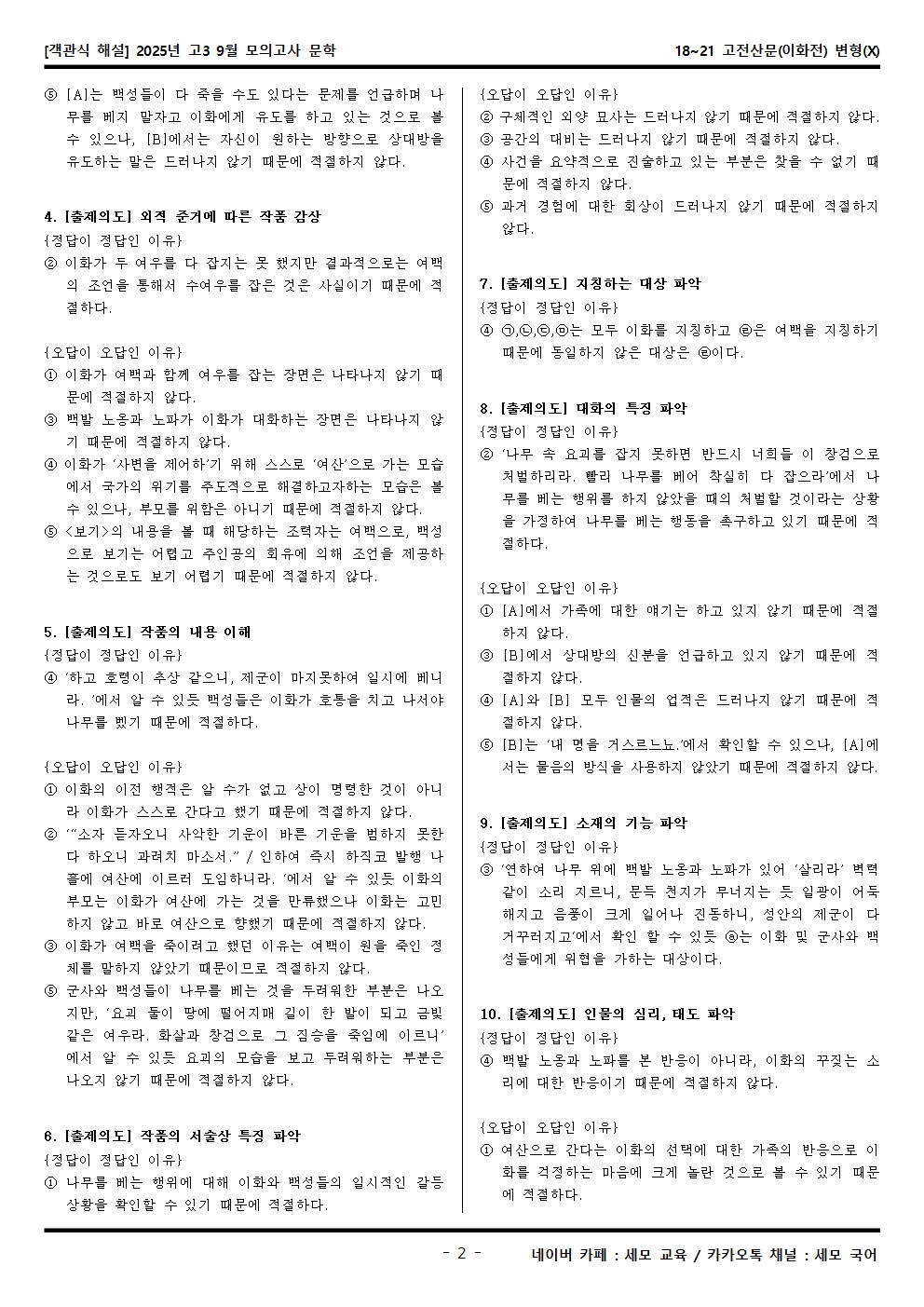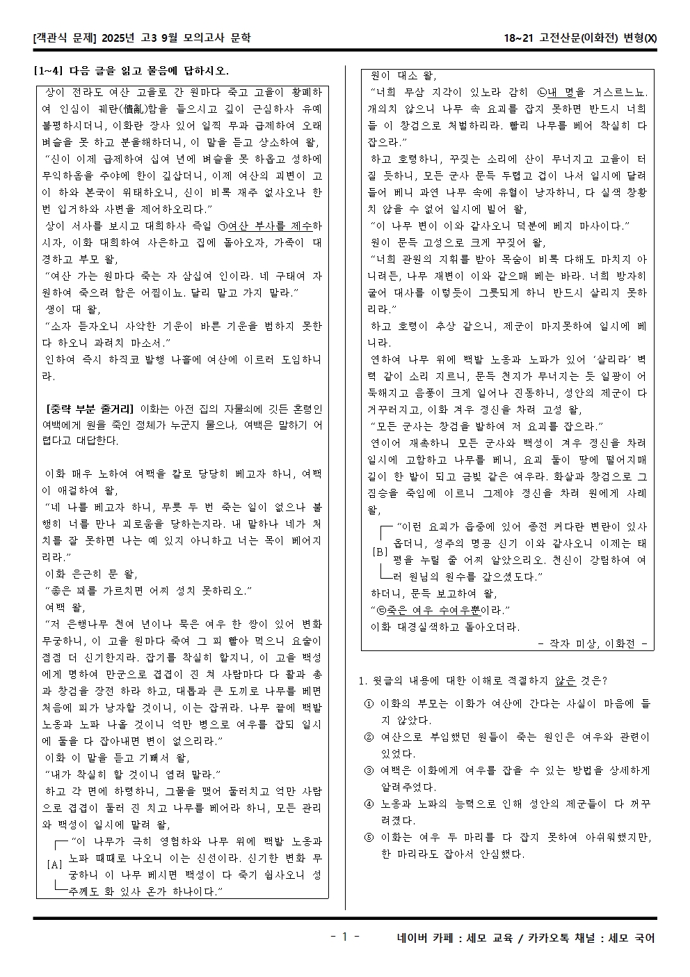 2025년 고3 9월 모의고사 문학 18~21 고전산문(이화전) 객관식 변형문제가 제작됐습니다! 세모 국어의 선생님들이 집중하여 최선을 다해 만든 자료인 만큼 내신, 수능 대비에 큰 도움이 되리라 자부합니다.