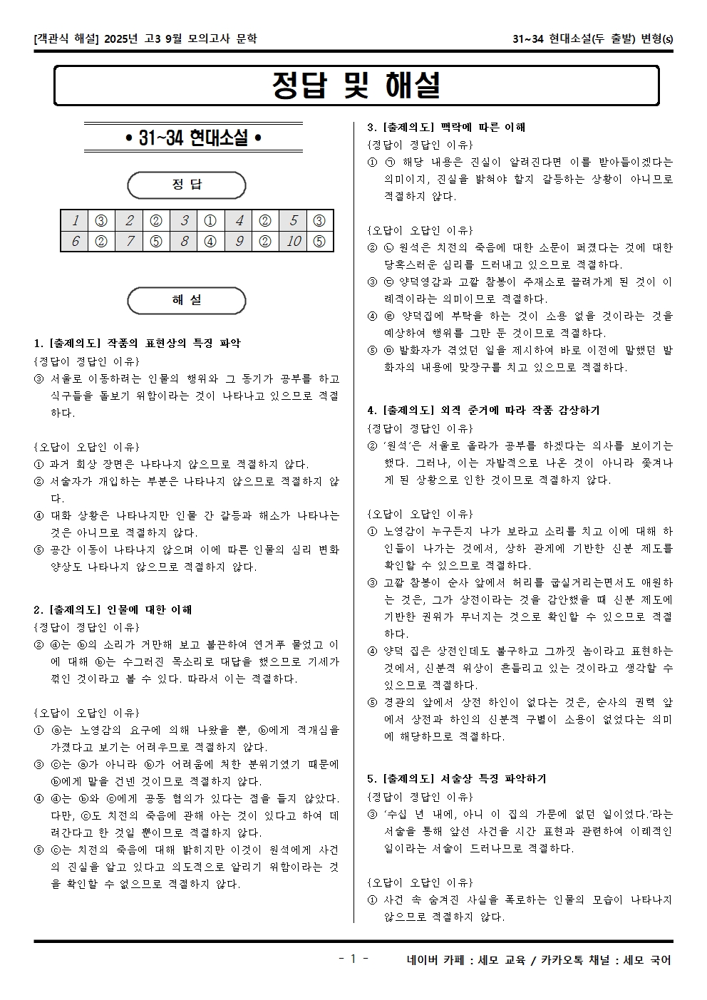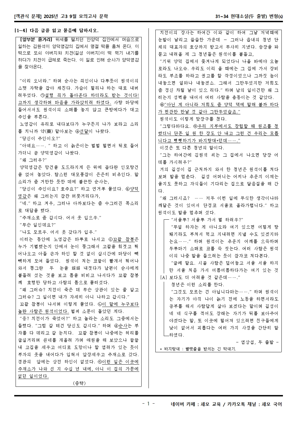 2025년 고3 9월 모의고사 문학 31~34 현대소설(두 출발) 객관식 변형문제가 제작됐습니다! 세모 국어의 선생님들이 집중하여 최선을 다해 만든 자료인 만큼 내신, 수능 대비에 큰 도움이 되리라 자부합니다.
