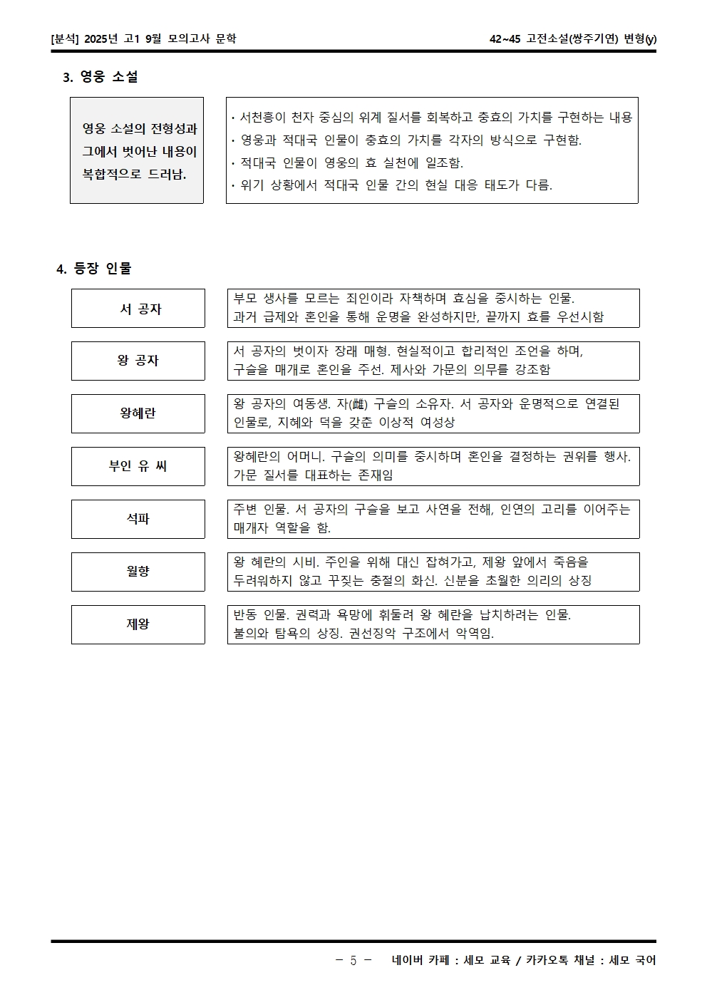 2025년 고1 9월 모의고사 문학 42~45 고전소설(쌍주기연) 분석해석해설이 제작됐습니다! 세모 국어의 선생님들이 집중하여 최선을 다해 만든 자료인 만큼 내신, 수능 대비에 큰 도움이 되리라 자부합니다.