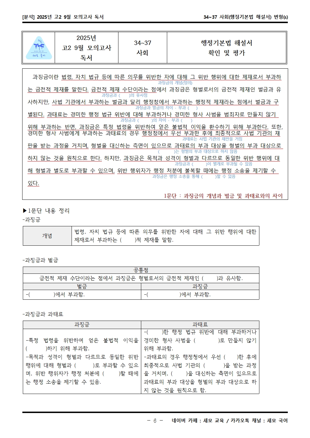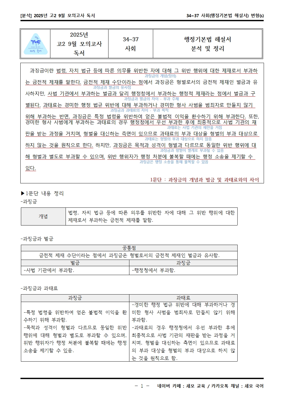 2025년 고2 9월 모의고사 독서 34~37 사회(행정기본법 해설서) 분석해석해설이 제작됐습니다! 세모 국어의 선생님들이 집중하여 최선을 다해 만든 자료인 만큼 내신, 수능 대비에 큰 도움이 되리라 자부합니다.