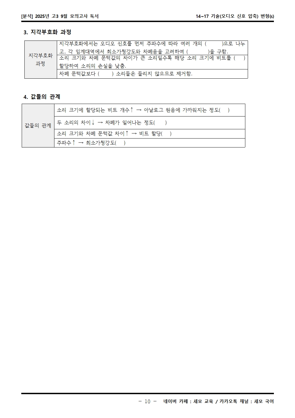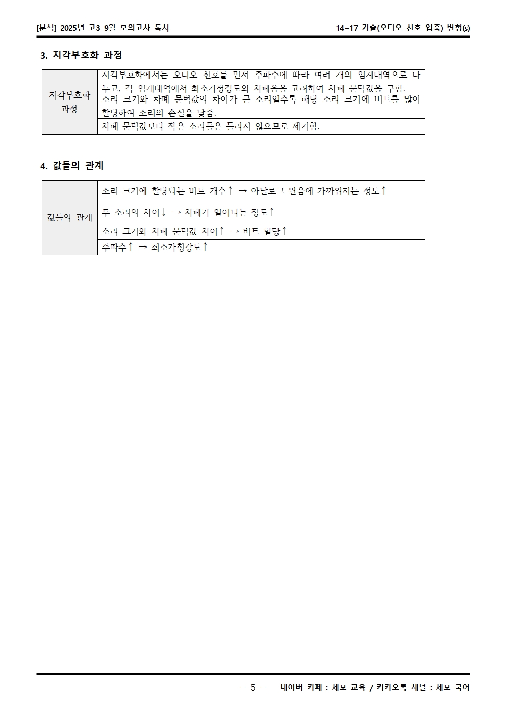 2025년 고3 9월 모의고사 독서 14~17 기술(오디오 신호 압축) 분석해석해설은 수능특강이 내신으로 들어가는 학생분들, 그 학생들을 가르치는 강사·교사·과외 선생님들, 수능을 준비하는 수험생들, 기타 자료가 필요하신 분 등을 위한 자료입니다.