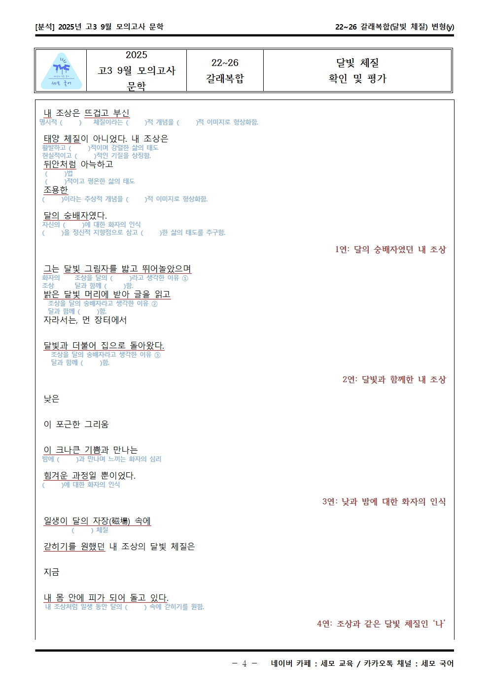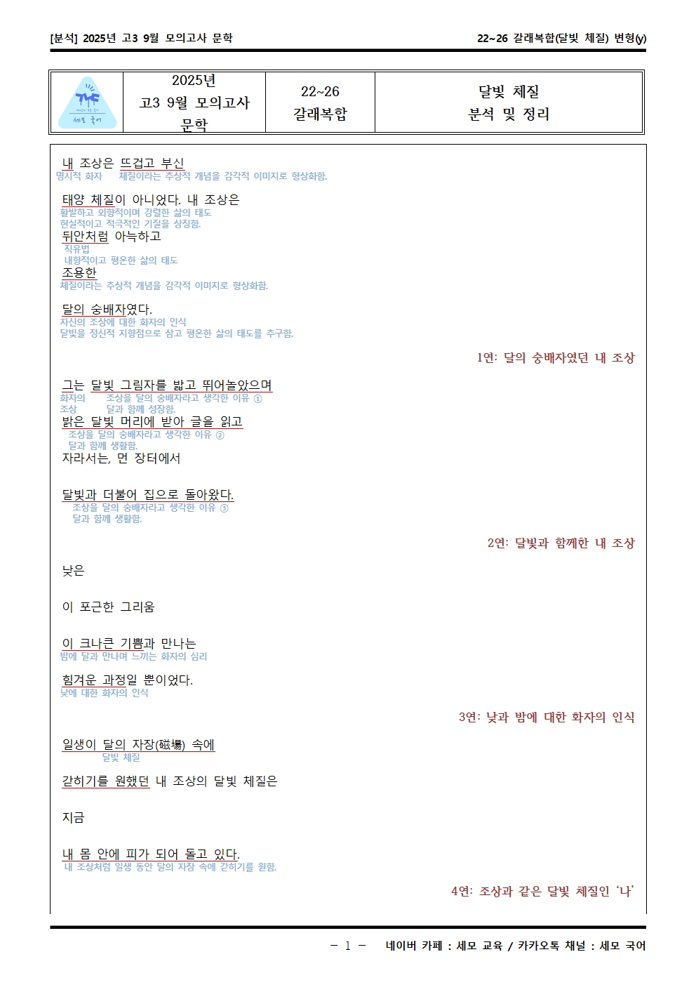 2025년 고3 9월 모의고사 문학 22~26 갈래복합(달빛 체질) 분석해석해설은 수능특강이 내신으로 들어가는 학생분들, 그 학생들을 가르치는 강사·교사·과외 선생님들, 수능을 준비하는 수험생들, 기타 자료가 필요하신 분 등을 위한 자료입니다.