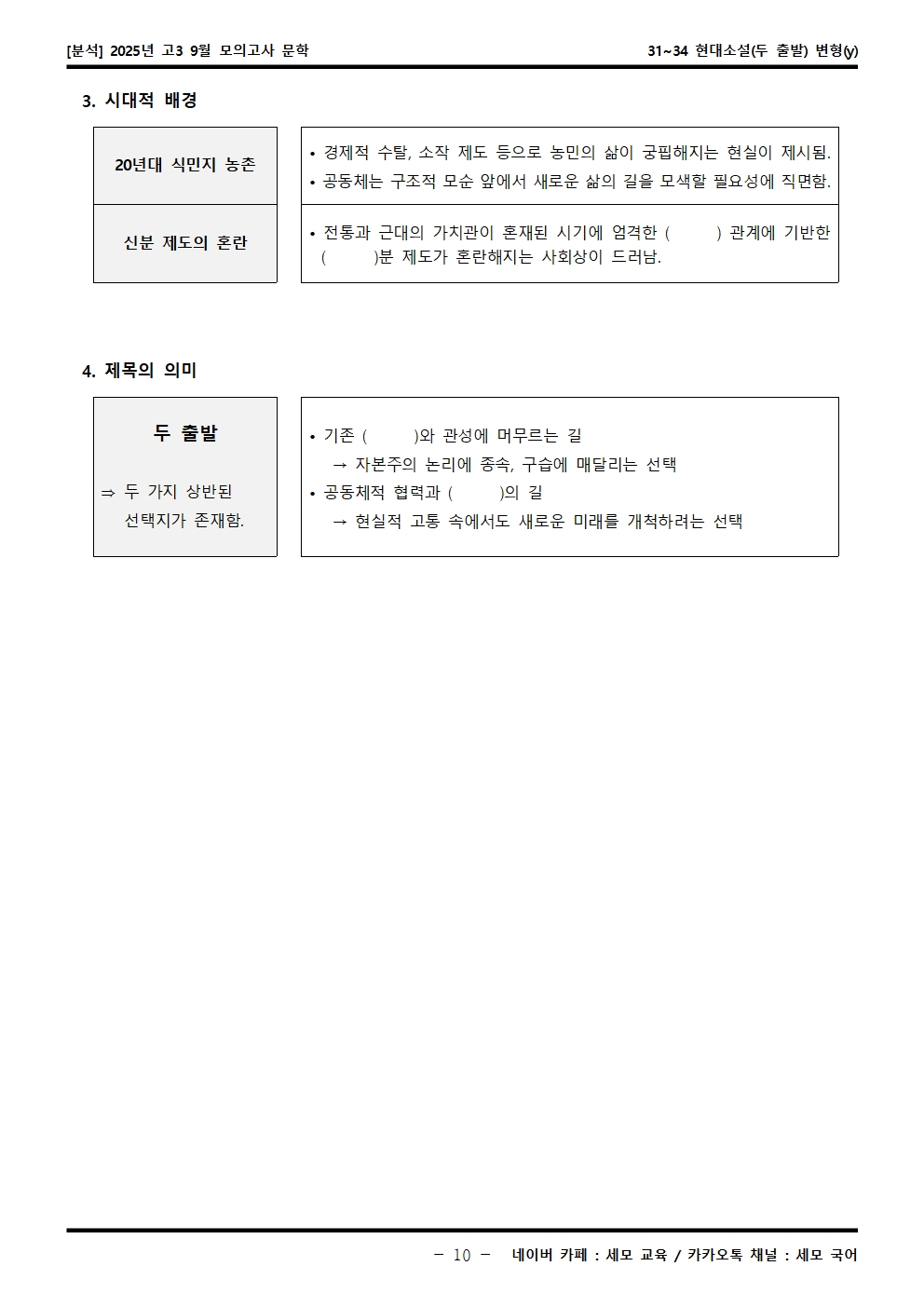 2025년 고3 9월 모의고사 문학 31~34 현대소설(두 출발) 분석해석해설은 수능특강이 내신으로 들어가는 학생분들, 그 학생들을 가르치는 강사·교사·과외 선생님들, 수능을 준비하는 수험생들, 기타 자료가 필요하신 분 등을 위한 자료입니다.