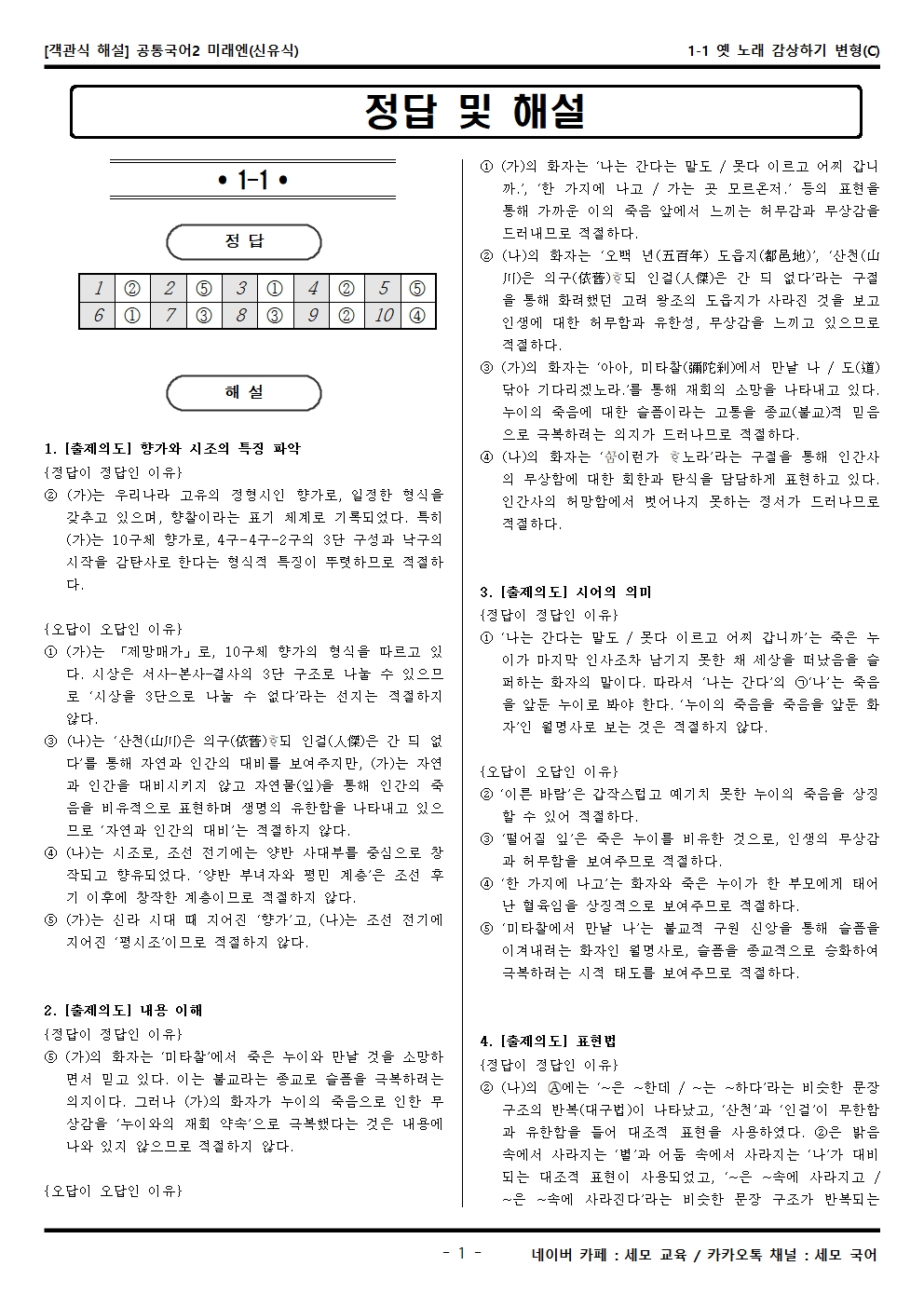 2022 개정 교육과정 고1 공통국어2 미래엔(신유식) 1-1 옛 노래 감상하기 객관식 변형문제가 제작됐습니다! 세모 국어의 선생님들이 집중하여 최선을 다해 만든 문제인 만큼 내신 대비에 큰 도움이 되리라 자부합니다.