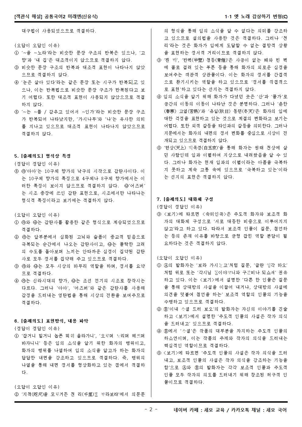 2022 개정 교육과정 고1 공통국어2 미래엔(신유식) 1-1 옛 노래 감상하기 객관식 변형문제는 공통국어2가 내신으로 들어가는 학생분들, 그 학생들을 가르치는 강사·교사·과외 선생님들, 기타 자료가 필요하신 분 등을 위한 문제입니다.