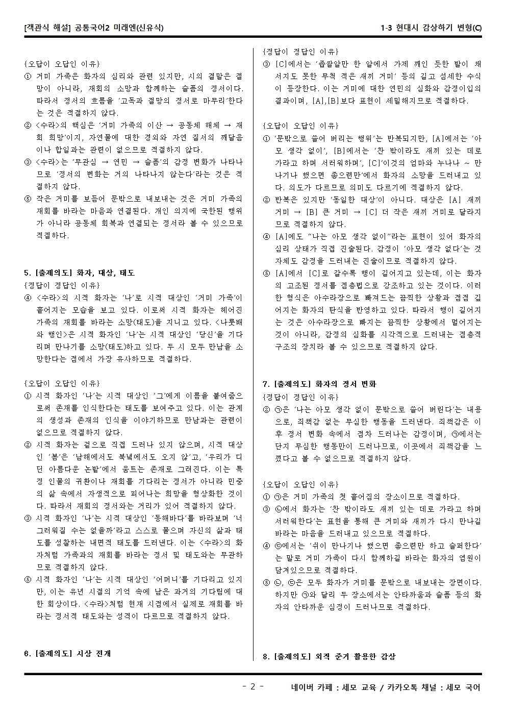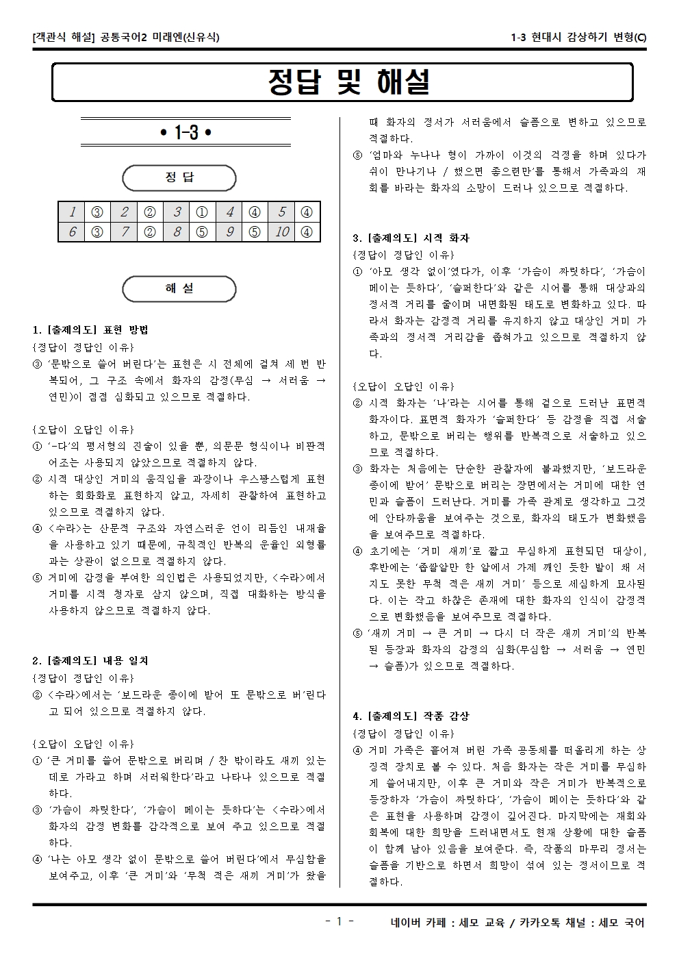2022 개정 교육과정 고1 공통국어2 미래엔(신유식) 1-3 현대시 감상하기 객관식 변형문제는 공통국어2가 내신으로 들어가는 학생분들, 그 학생들을 가르치는 강사·교사·과외 선생님들, 기타 자료가 필요하신 분 등을 위한 문제입니다.