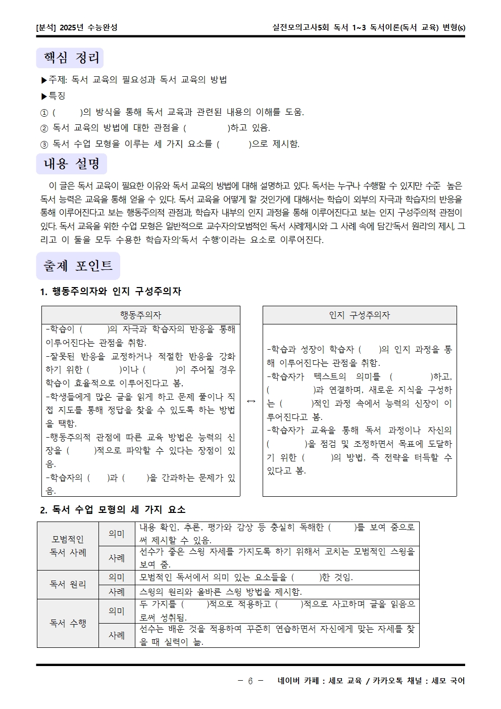 지문분석 + 핵심정리 + 내용 설명 + 출제 포인트 + 빈칸 문제