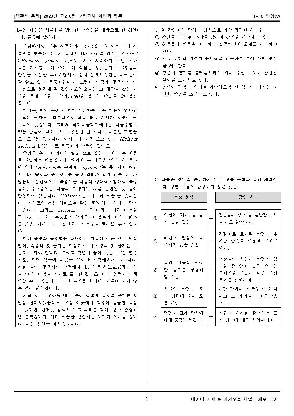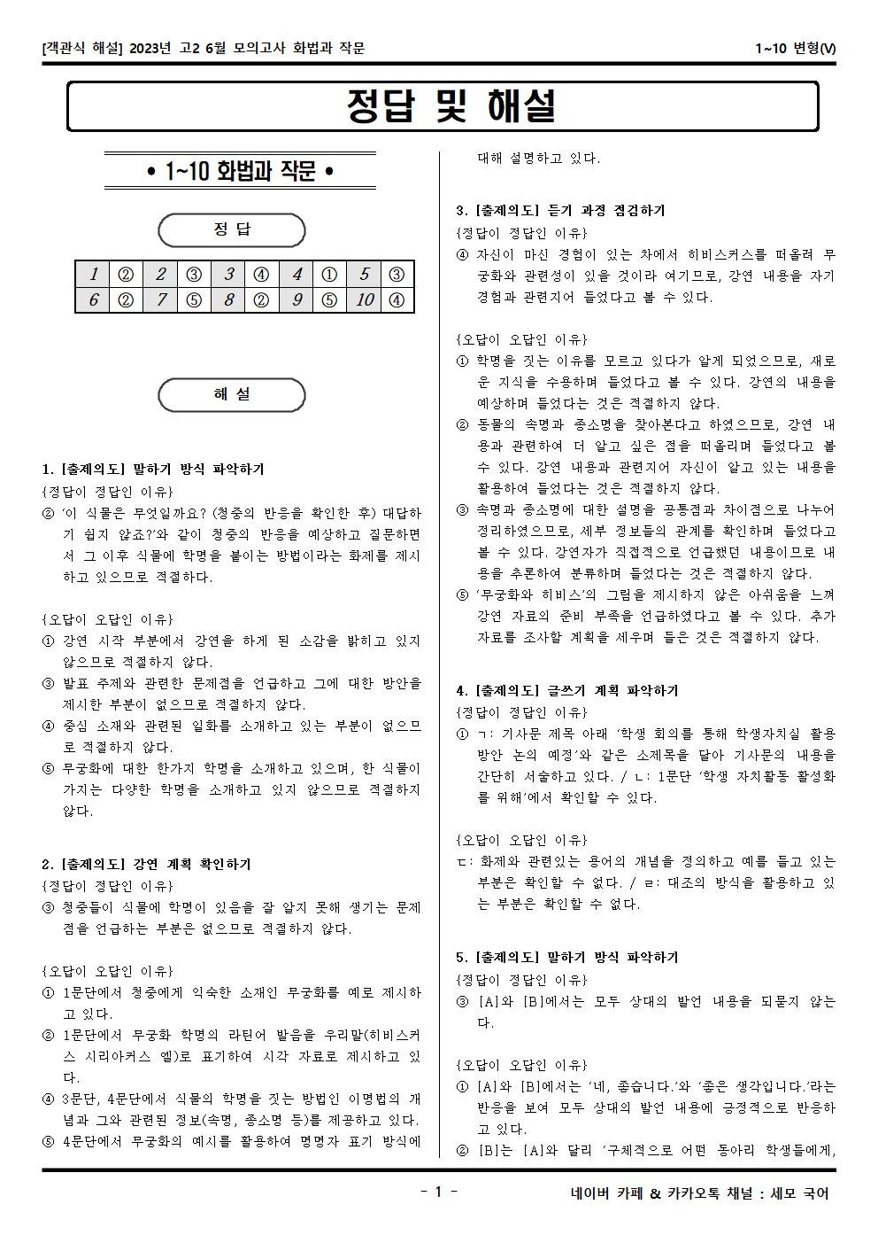 2023년 고2 6월 모의고사 화법과 작문 1~10 변형문제가 제작됐습니다! 세모 국어의 선생님들이 집중하여 최선을 다해 만든 문제인 만큼 내신, 수능 대비에 큰 도움이 되리라 자부합니다.
